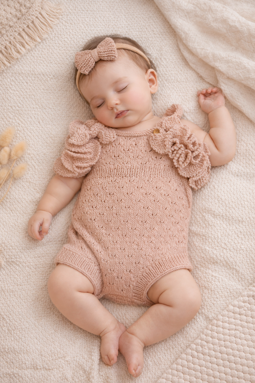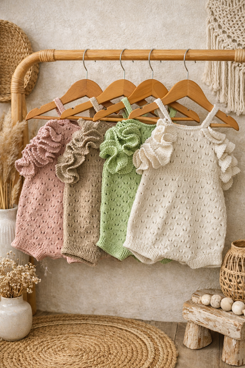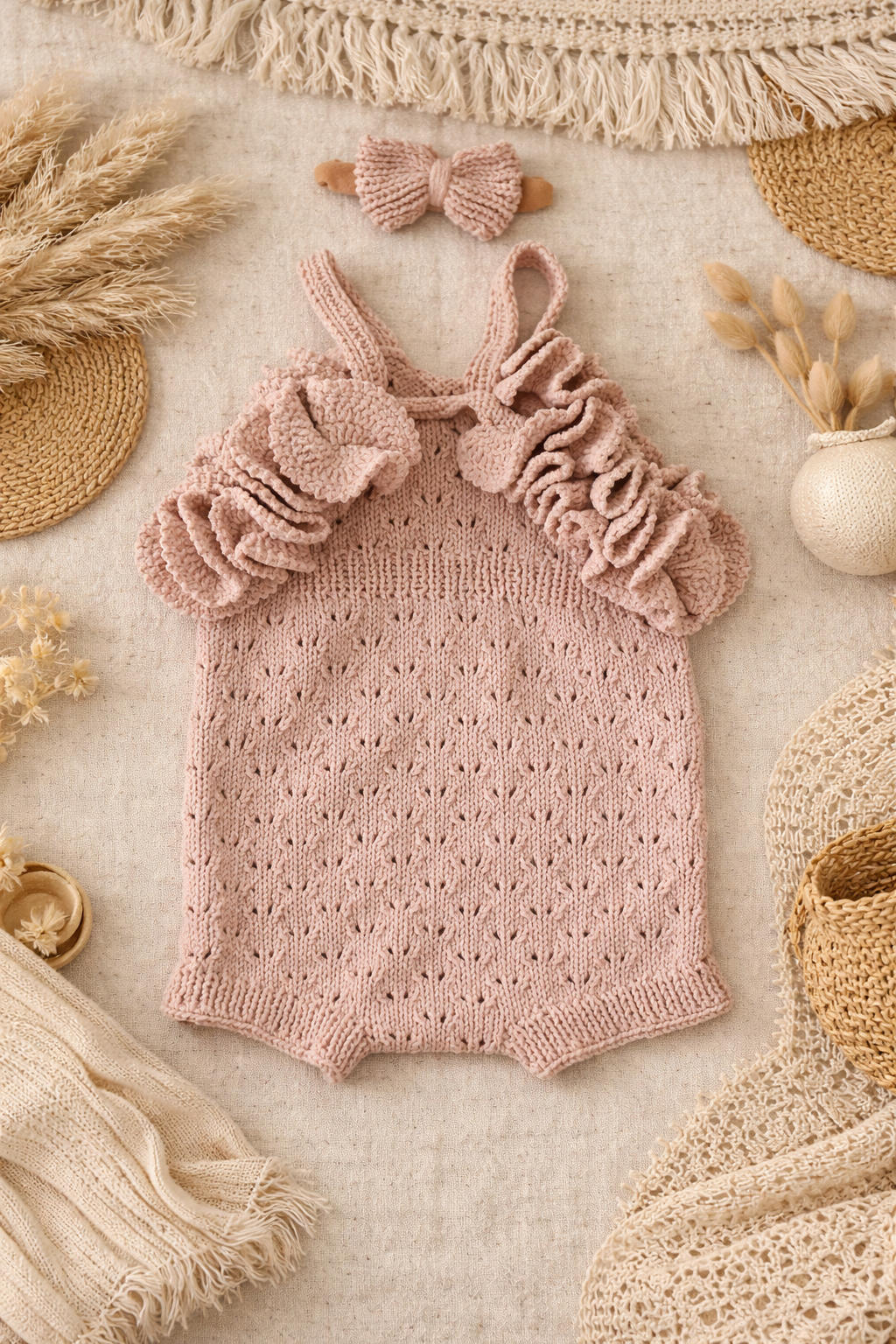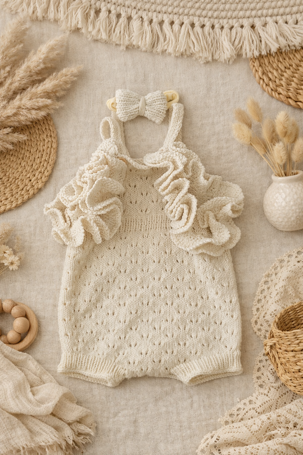 🤍 Ruffle Knit Romper (Organic + Handmade)