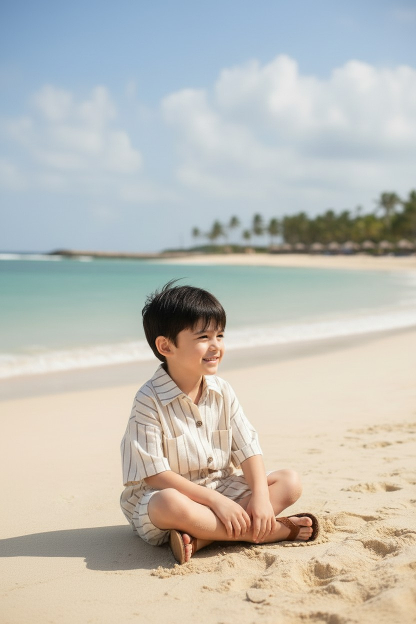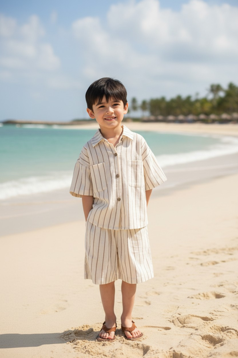 Made for sunshine days, beach strolls, and special summer moments, this set blends comfort with understated elegance – because boys deserve timeless style too.