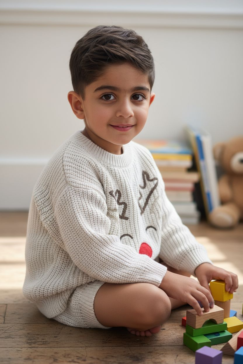 Bring holiday magic to your little one’s wardrobe with our Rudy the Reindeer Knit Sweater — a cozy winter essential that’s as adorable as it is comfortable!