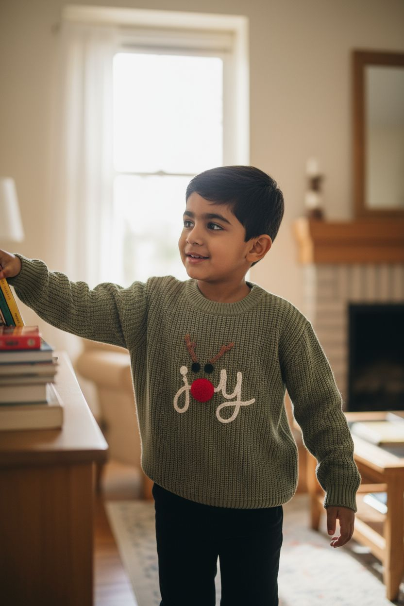 Wrap your little one in cozy holiday cheer with our Joyful Reindeer Knit Sweater — the perfect blend of comfort, warmth, and festive charm!