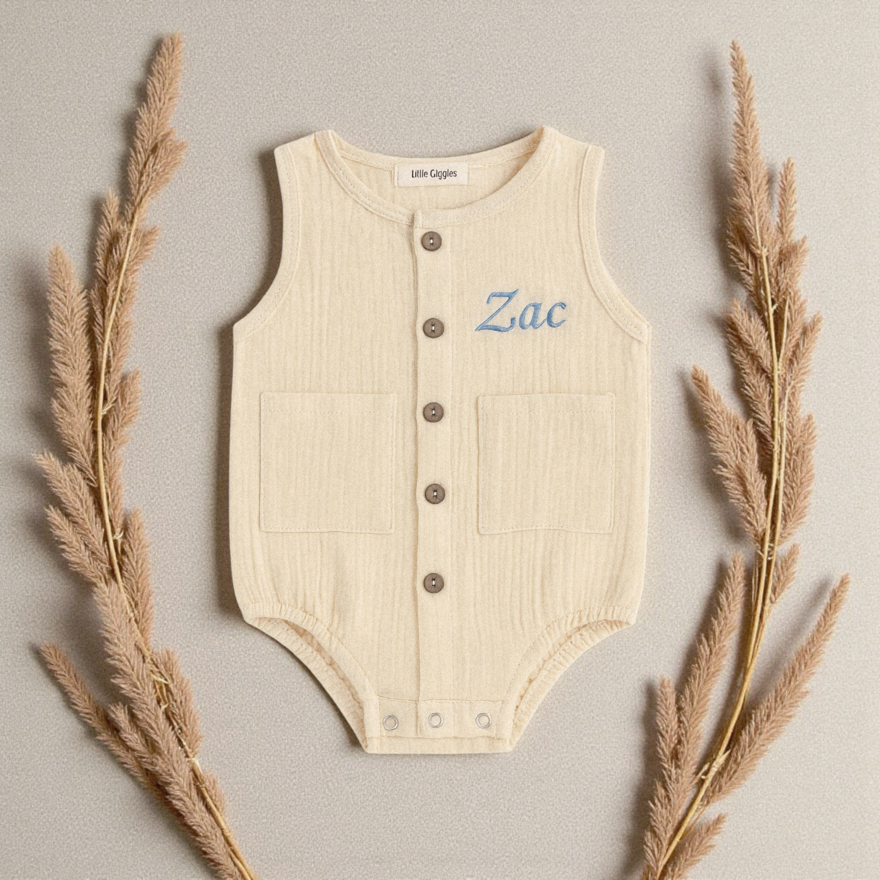 Get your little one party-ready with the Archie Romper. Made with soft and breathable cotton muslin, this unisex romper is perfect for any occasion. It's comfortable and stylish, making it a must-have for any baby wardrobe. Let your baby stand out while staying cozy in the Archie Romper.