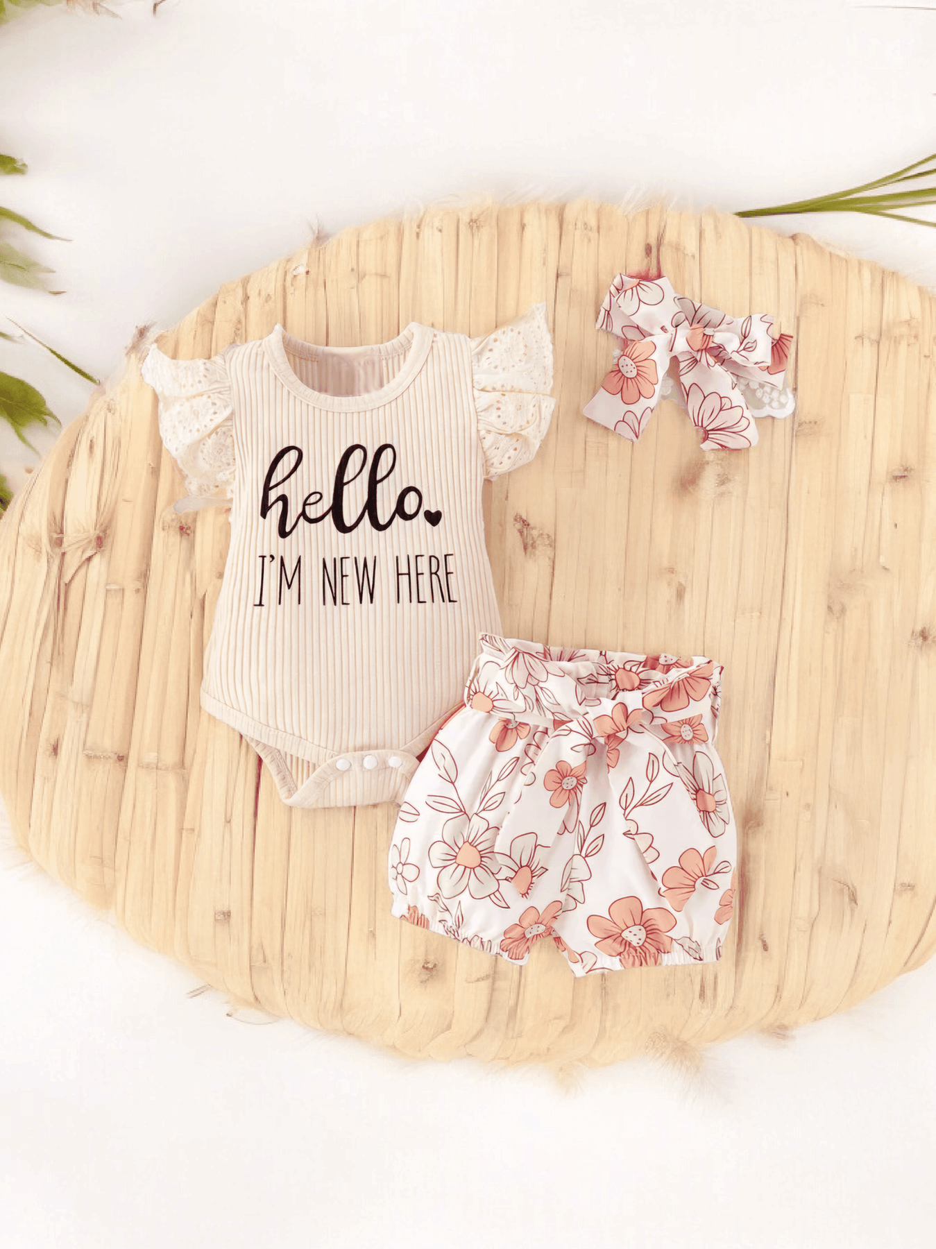 Introducing our adorable newborn outfit, complete with matching headbands for your little girl. Perfect for making a stylish entrance, or a cute photo op. Welcome to the world, little one!