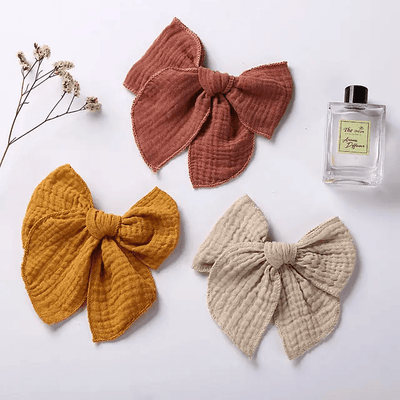 Crafted from 100% cotton muslin, these oversized hair clips come in an array of beautiful colors. Create looks with a unique twist, and add a hint of flair to any hairstyle! Which one will you choose?