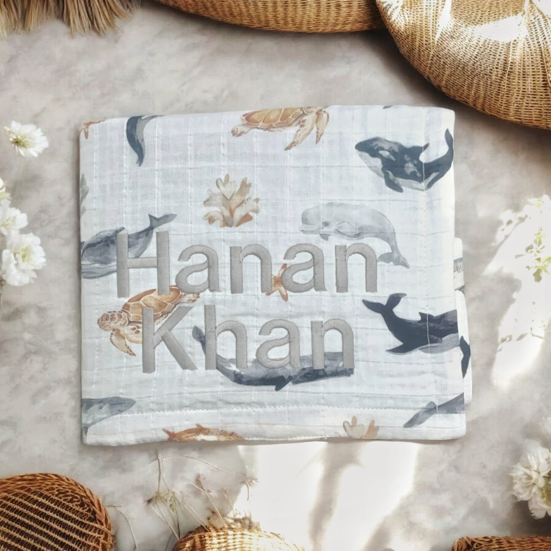 Wrap your little one in pure comfort with the Ocean Blanket! Made from 100% certified organic cotton, this reversible baby blanket is gentle on delicate skin and perfect for cuddles.