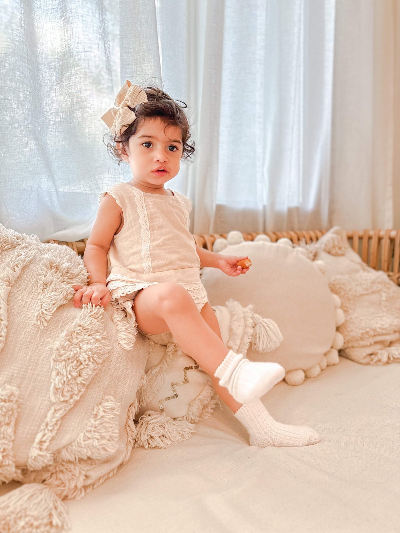 Your little princess will be the belle of the ball in this exquisite Sara Linen Set! Crafted in luxuriously soft linen with beautiful lace detailing and romantic ruffles, she will shine with unique style and grace. Make a statement and delight your little one with this awe-inspiring ensemble!